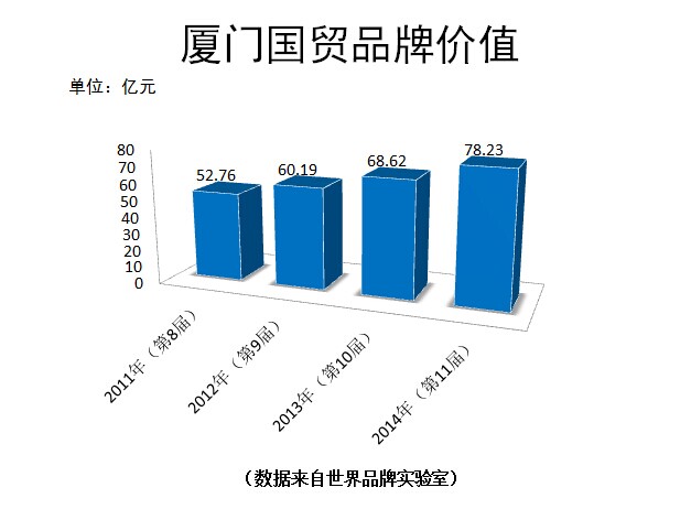 6月25日,世界品牌實驗室在北京召開世界品牌大會,發(fā)布2014(第十一屆)《中國500最具價值品牌》排行榜。在這份基于財務(wù)分析、消費者行為分析和品牌強(qiáng)度分析而獲得的中國品牌國家隊陣容中,廈門國貿(mào)集團(tuán)股份有限公司第4次上榜,名列年度榜單第284位,品牌價值78.23億元,較上年度增加了9.61億元。