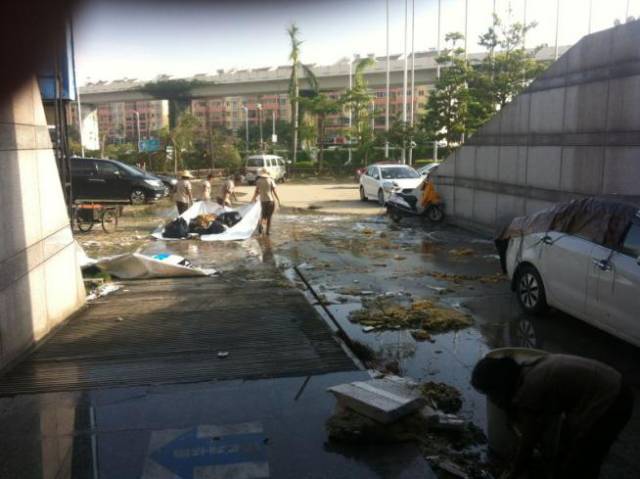 在物業(yè)公司員工的幫助下,幾個被風(fēng)吹破的玻璃很快被用木板臨時加固。在他們和地產(chǎn)廈門公司全力協(xié)助以及社區(qū)志愿者配合下,被倒坍大樹阻擋的進(jìn)出國貿(mào)大廈的 唯一通道于17日上午順利打通,所有樹枝分三部車也在當(dāng)天晚上8時許的瓢潑大雨中運(yùn)走,確保了18日上班車輛的正常通行。