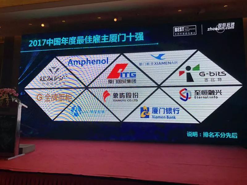 1月24日,“數(shù)字驅(qū)動(dòng),智造未來(lái)”2017中國(guó)年度最佳雇主頒獎(jiǎng)盛典在廈門舉行?;顒?dòng)當(dāng)天揭曉了2017年廈門年度最佳雇主10強(qiáng),廈門國(guó)貿(mào)以絕對(duì)優(yōu)勢(shì),再次入選廈門年度最佳雇主10強(qiáng)榜單。