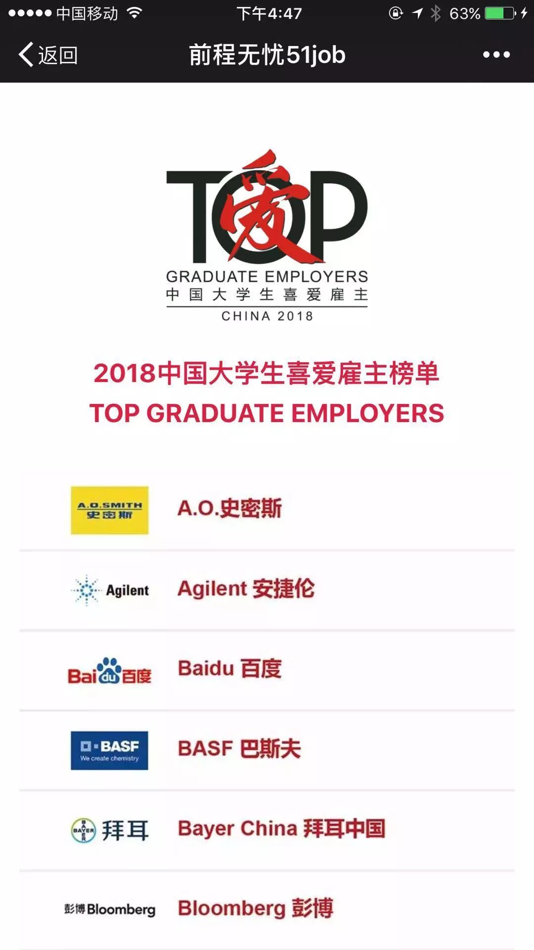 “中國大學生喜愛雇主”(TopGraduateEmployers)評選由中國領先的人力資源服務商前程無憂(51job.com)和擁有數(shù)百萬大學生用戶的應屆生求職網(wǎng)(yingjiesheng.com)聯(lián)合發(fā)起,經(jīng)過評選,全國70多家企業(yè)上榜,福建3家企業(yè)入圍。