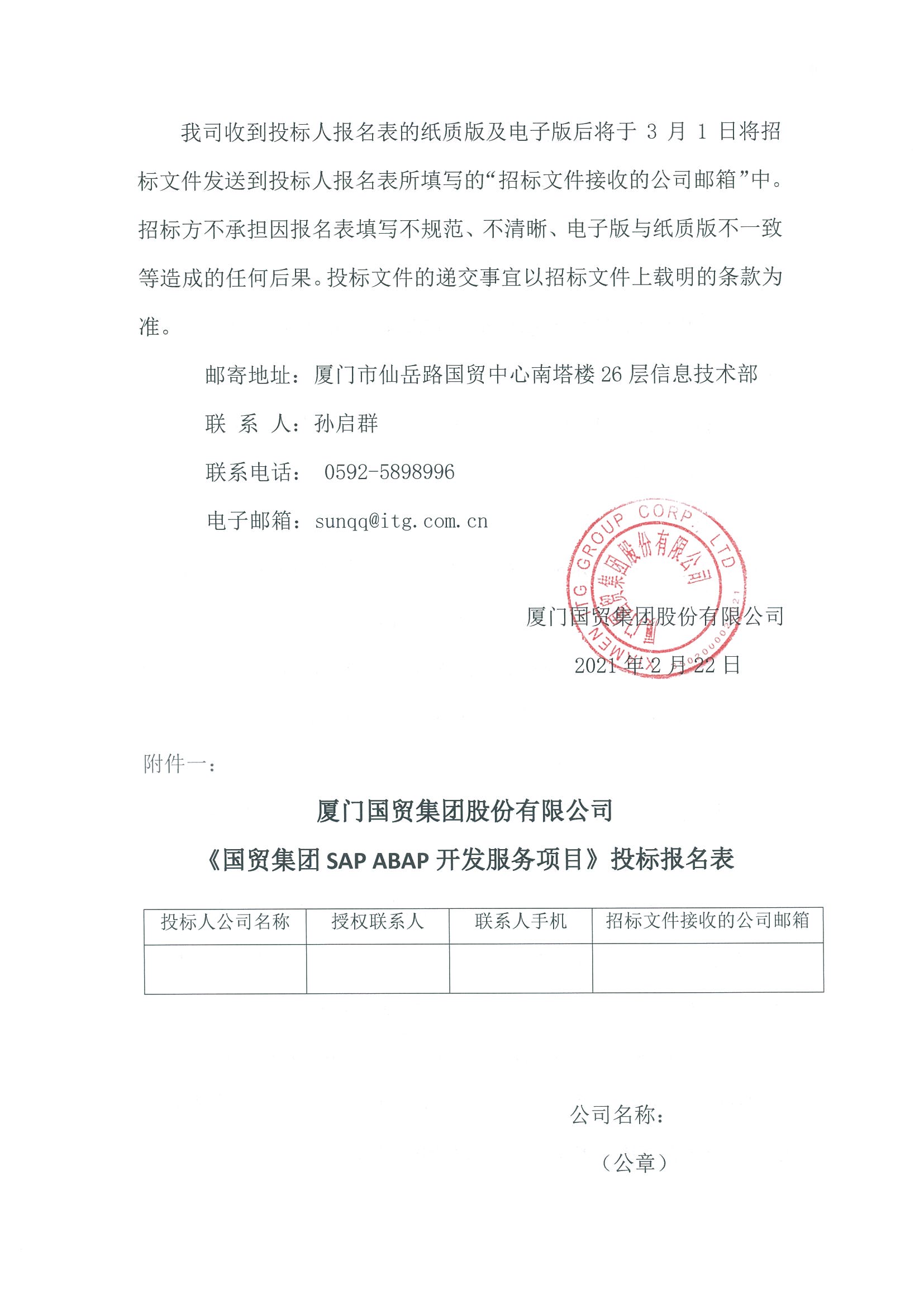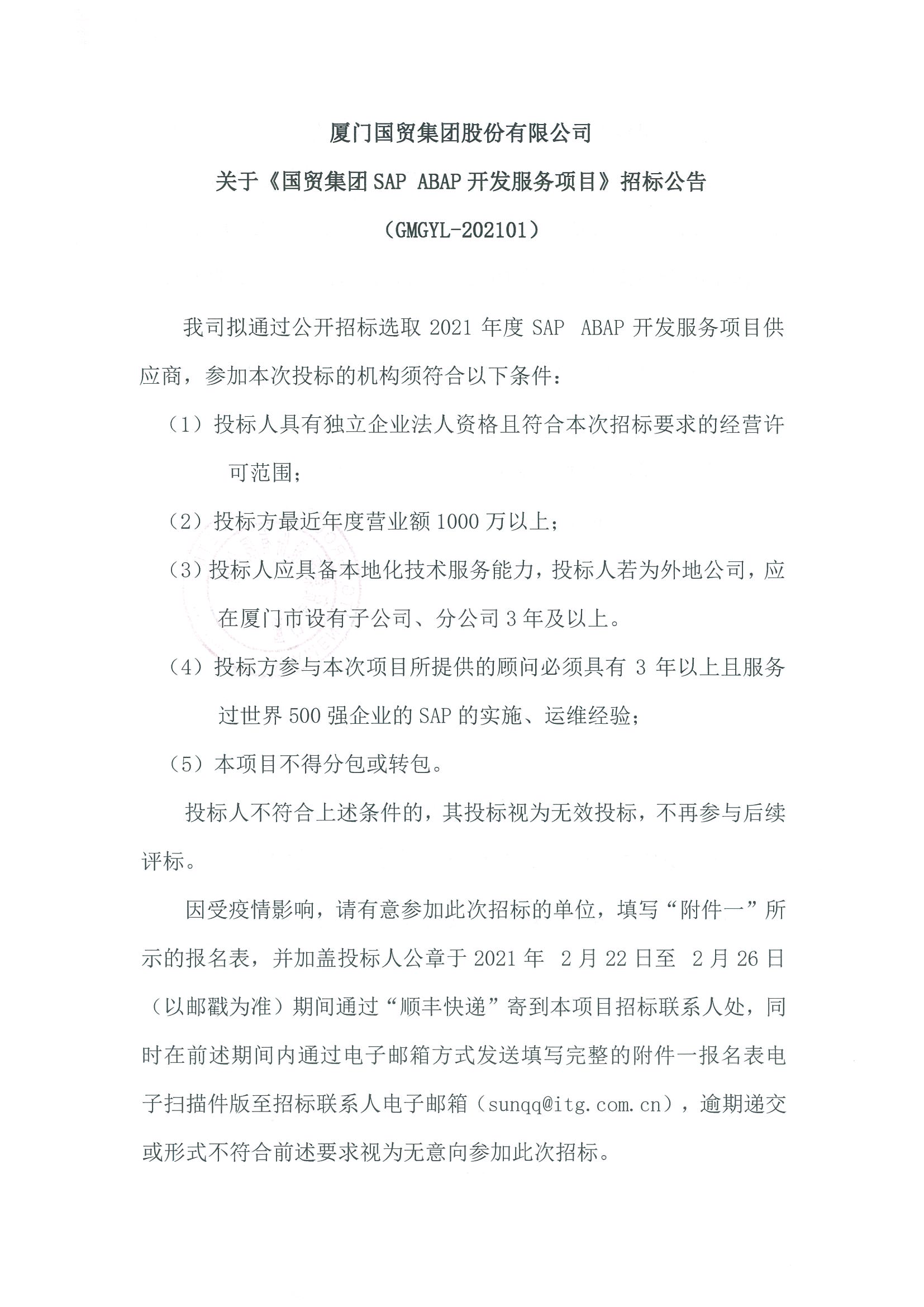 關(guān)于《國貿(mào)集團SAP ABAP開發(fā)服務(wù)項目》招標(biāo)公告