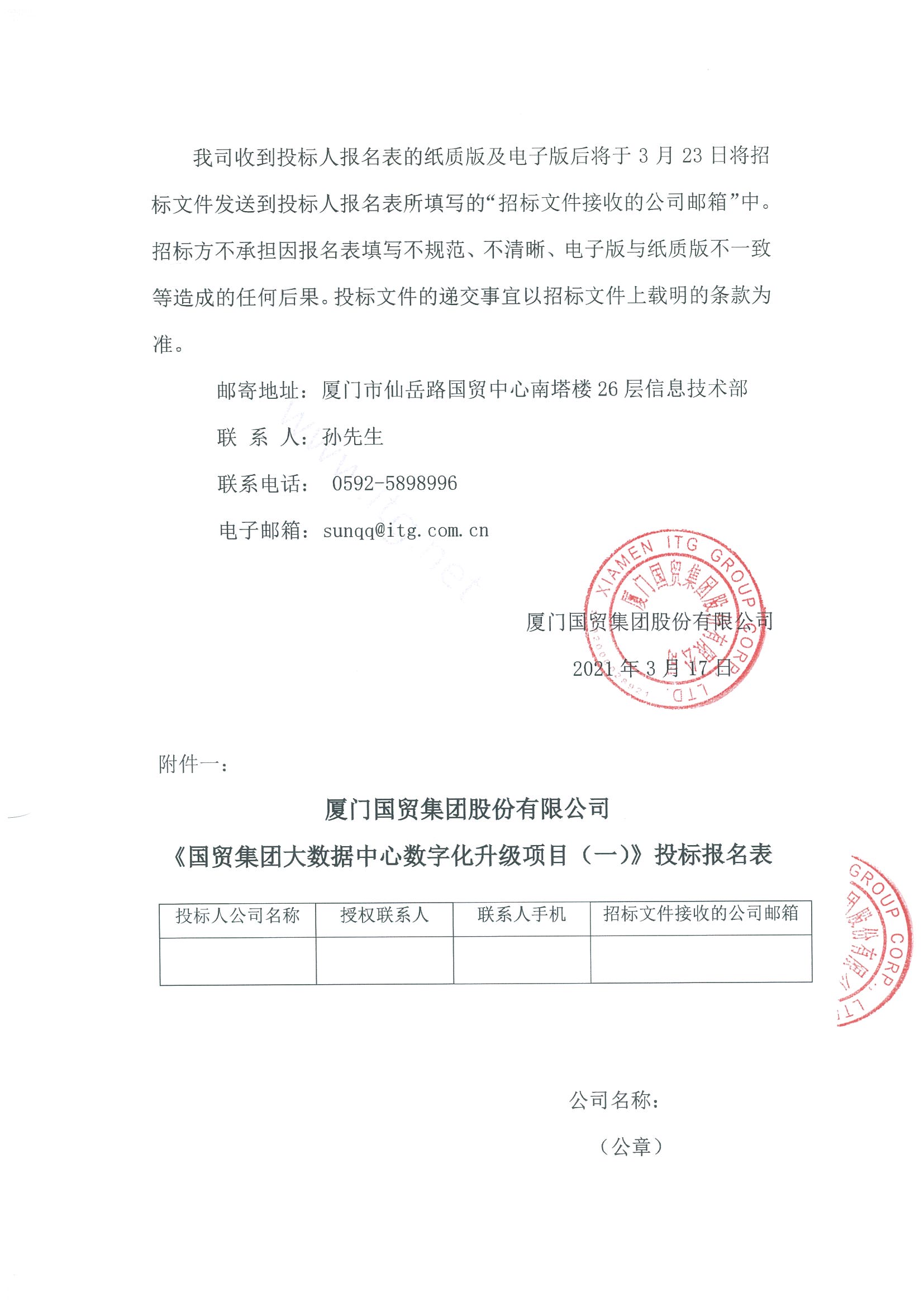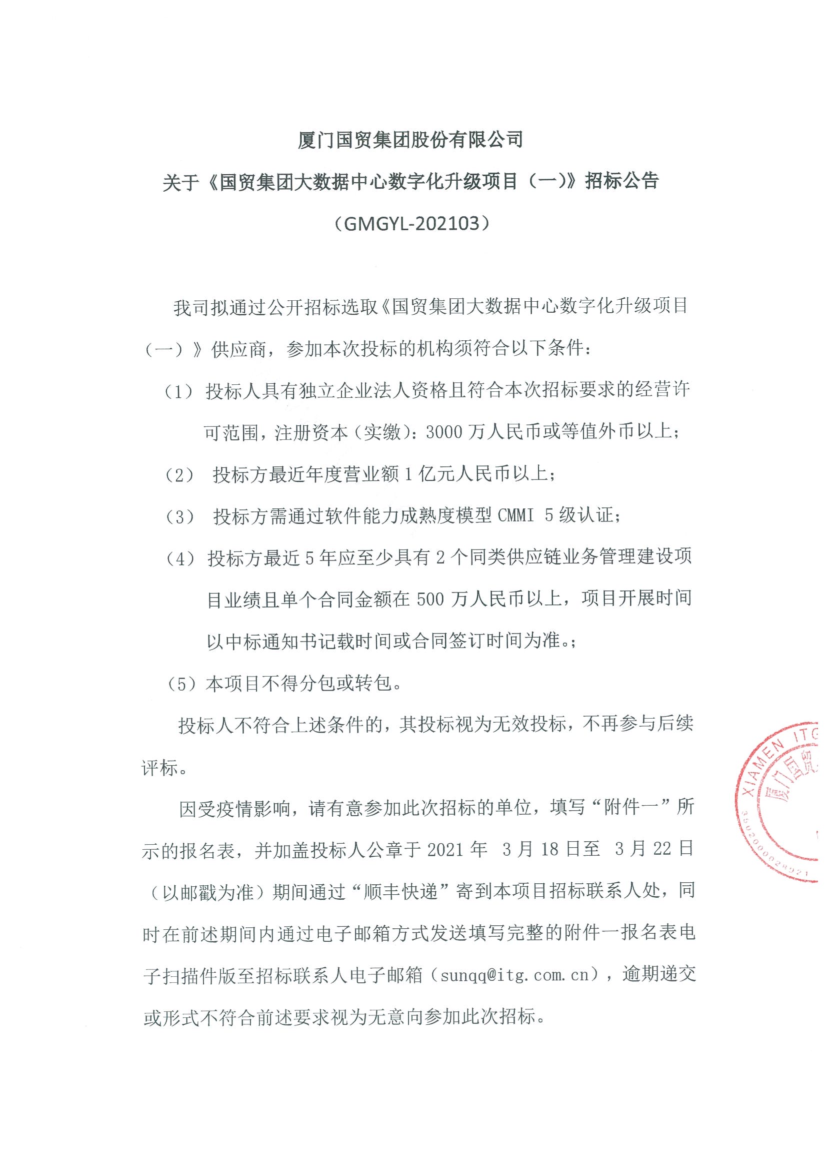 關(guān)于《國貿(mào)集團(tuán)大數(shù)據(jù)中心數(shù)字化升級項(xiàng)目(一) 》招標(biāo)公告