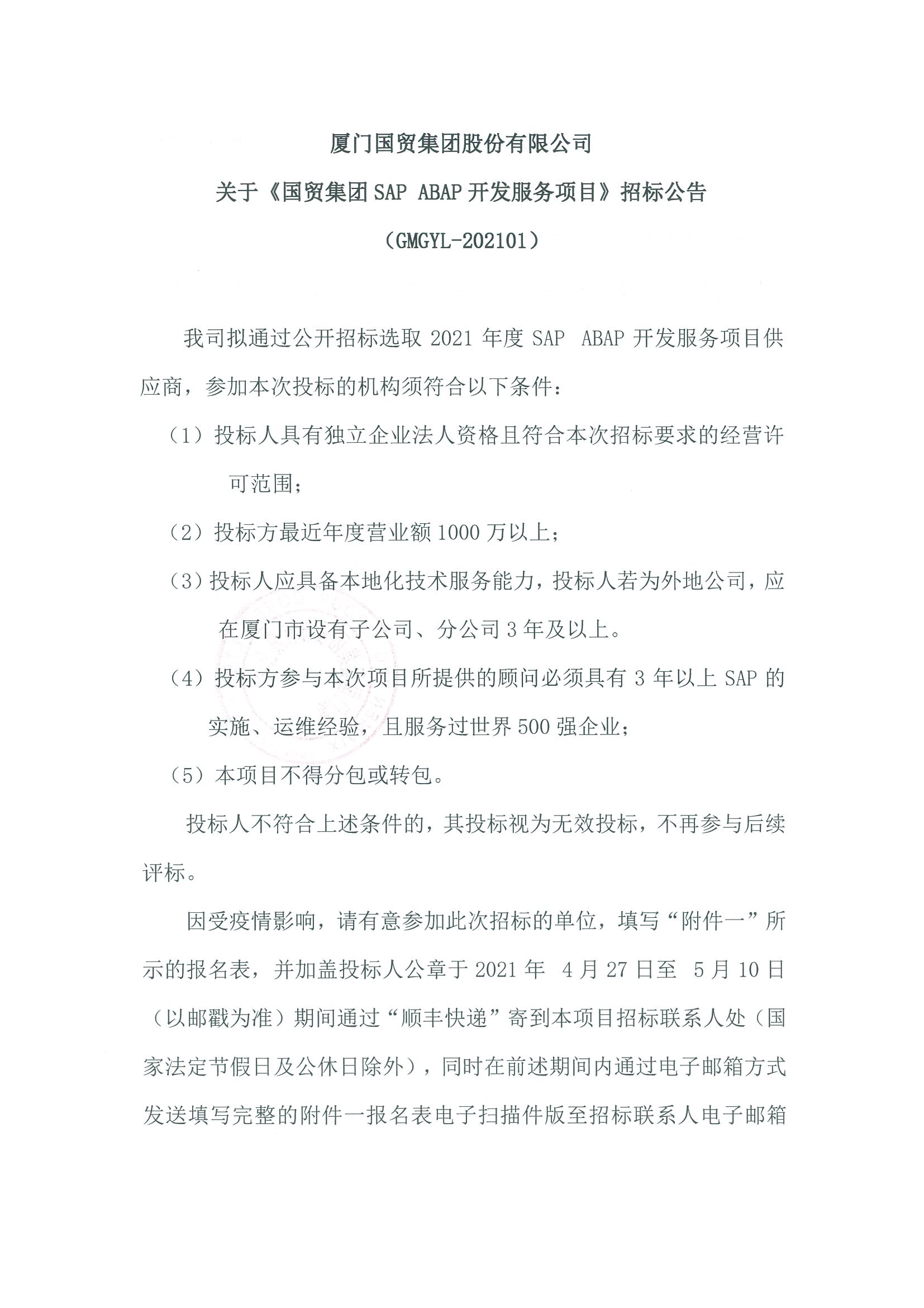 關(guān)于《國貿(mào)集團SAP ABAP開發(fā)服務(wù)項目》招標公告
