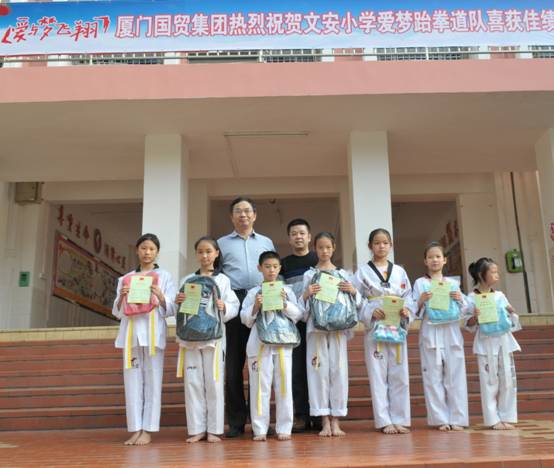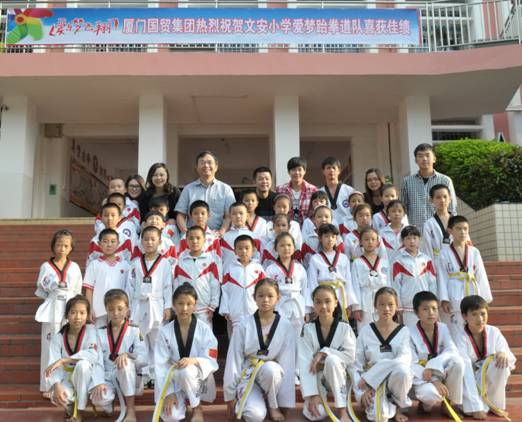 文安小學(xué)愛夢(mèng)跆拳道隊(duì)成立于今年年初,由廈門國(guó)貿(mào)集團(tuán)贊助支持,并取名為“愛夢(mèng)